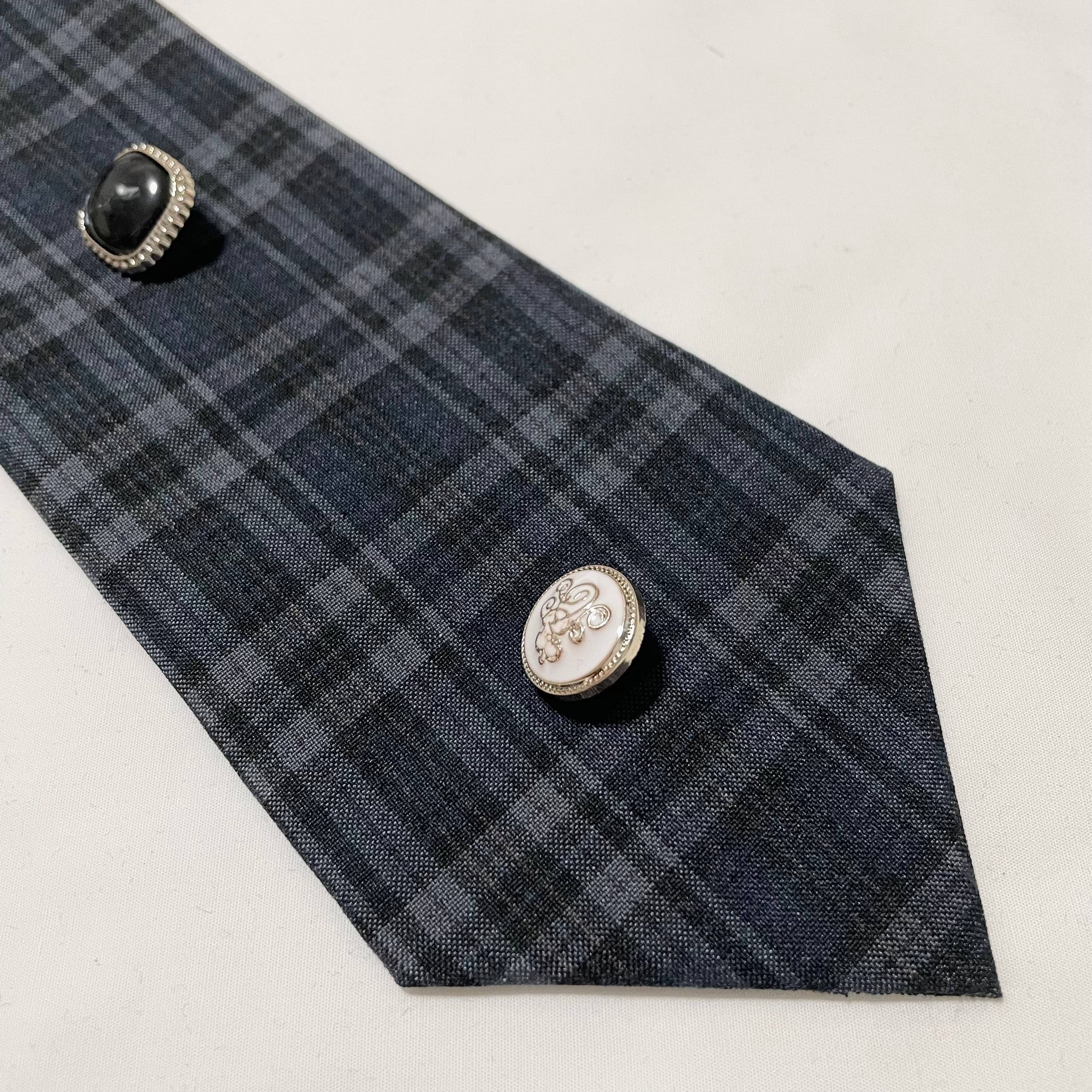 オリジナルネクタイ(青灰色チェック×ボタン)